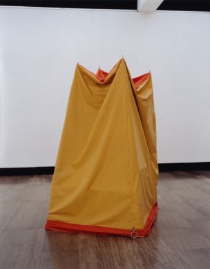 Zelt Horizont, 1997, Plane, Stangen, Ringe, 200 x 90 x 90 cm.